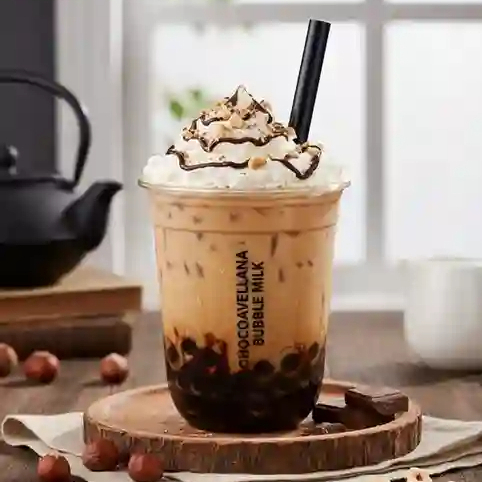 Té especiado con leche, sabor cálido y aromático, con tapioca.