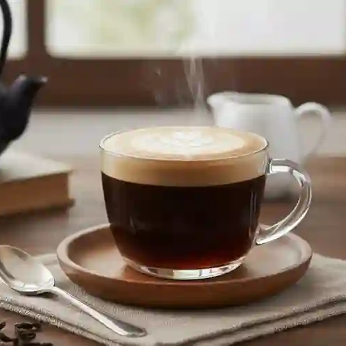 Café espresso diluido en agua caliente, sabor suave y equilibrado.