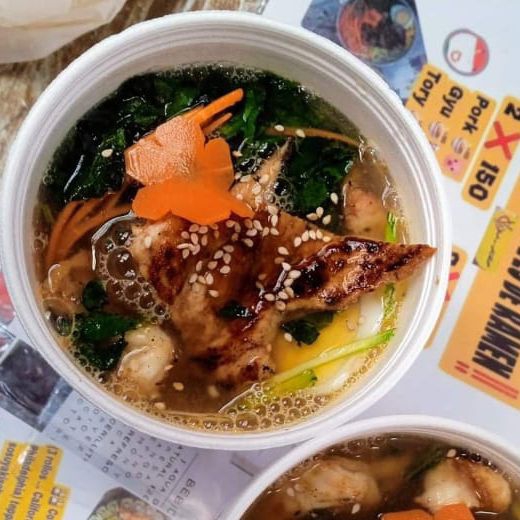 Ramen , huevo, espinaca, zanahoria, calabaza, elote, carne de cerdo .