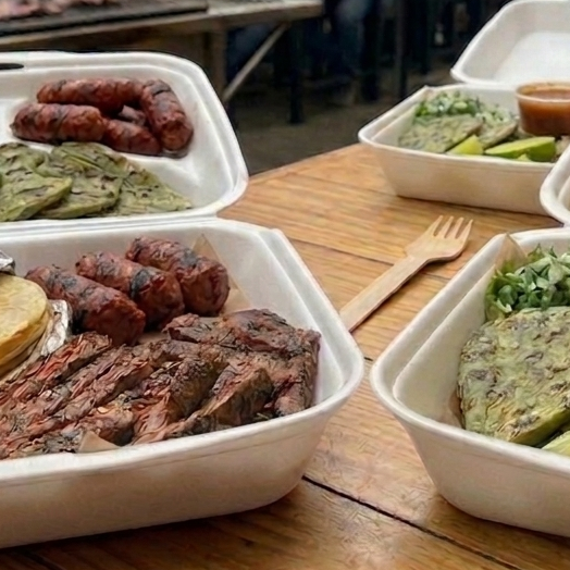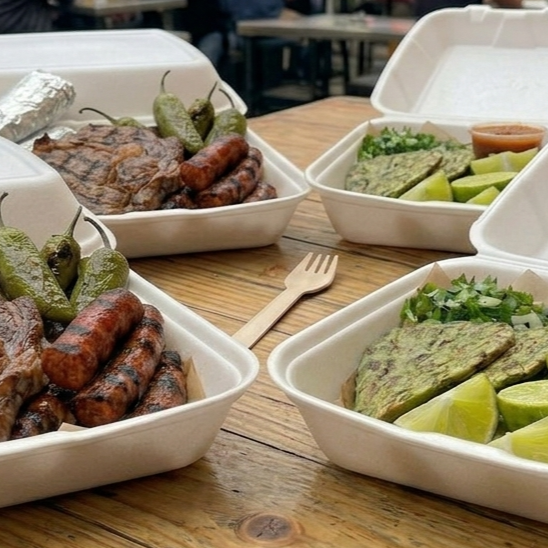 parrillada para 4 personas de proteinas res, arrachera y longaniza. acompañamientos :nopal, cebolla ,limon , cuaresmeño , tortillas y chiles toreados