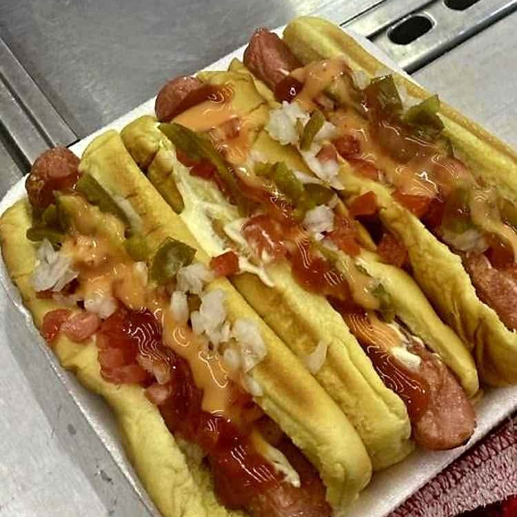 Hot Dog con pico de gallo y la salchica envuelta en tocino.