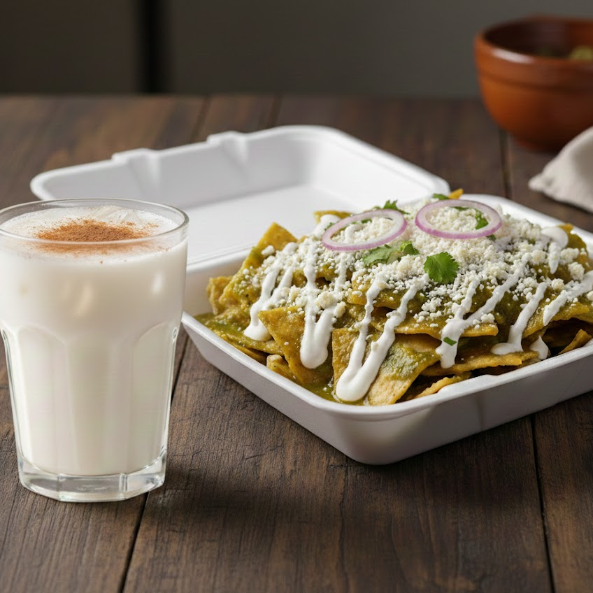 Agua de Horchata 475ml*1 + Chilaquiles Verdes*1 + Bolillo*1