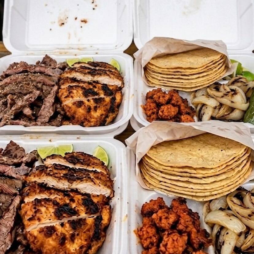 Parrillada pensada para 2 personas con Bistec ,longaniza y pollo de proteínas. Acompañado de tortillas chiles cuaresmeño ,serrano ,cebolla y limon