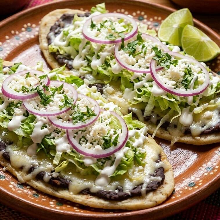 Orden de 4 sopes con frijol, longaniza, lechuga crema y queso.