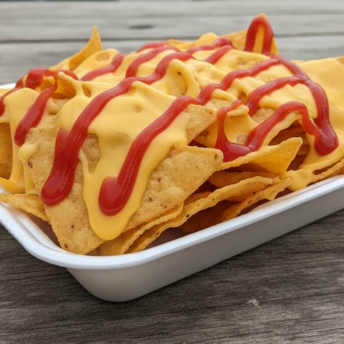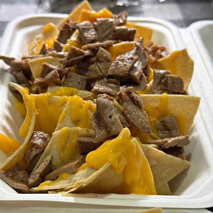 Totopos de maíz bañados en salsa rojo con pollo, huevo o carne asada a gusto.