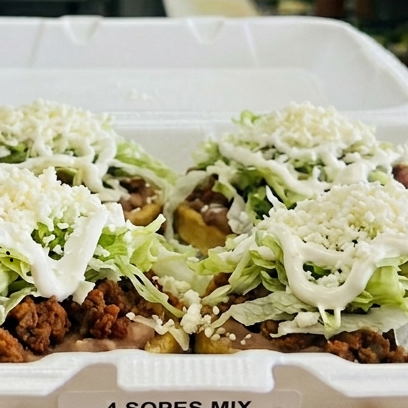 Orden de 4 sopes con base de frijoles longaniza ,lechuga ,queso y crema