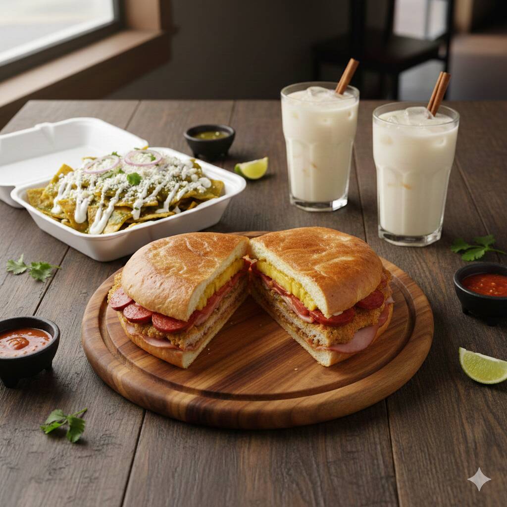 Chilaquiles Verdes*1 + Agua de Horchata 475ml*1 + Agua de Piña Colada 475ml*1 + Torta Milanesa*1