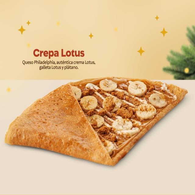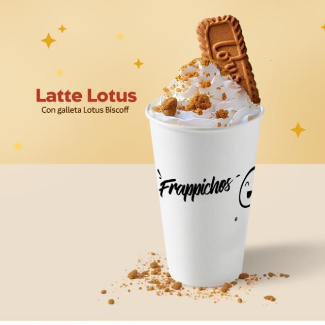 Latte Lotus® con leche caliente y espumosa, toque de crema Lotus®, crema batida y crumble de galleta, coronado con galleta Lotus®.