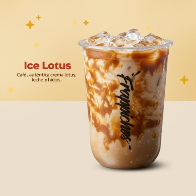 Preparación a base de hielo, leche, leche condensada y crema Lotus®, combinados para brindar una experiencia suave y de sabor caracteristico.