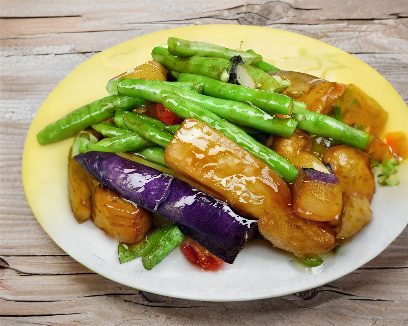 豆角烧茄子 Berenjenas Asadas Con Frijoles