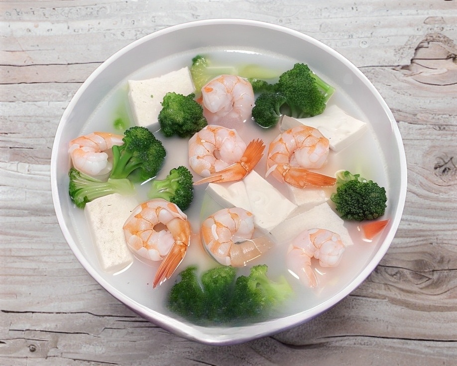 虾仁豆腐汤 Sopa Tofu y Carmaron