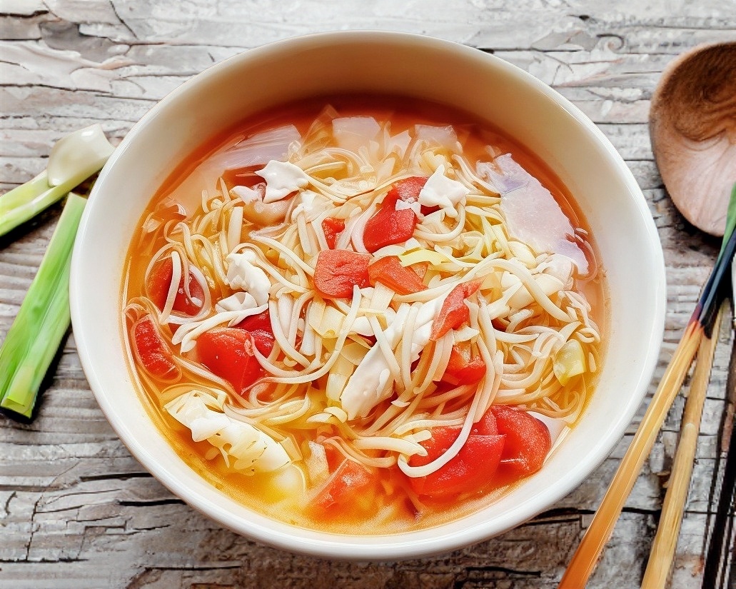 西红柿鸡蛋面 Fideos De Huevo Con Tomate