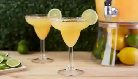 Limonada preparada con jugo de limón, jugo de naranja, agua mineral y azúcar.