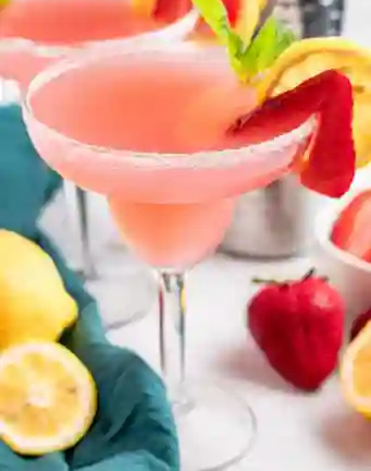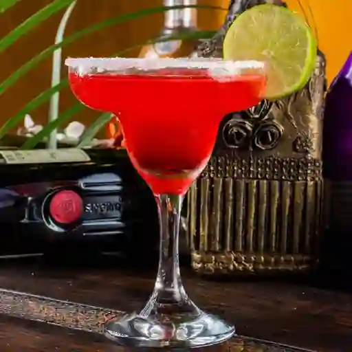 Limonada preparada con jugo de frutas rojas, agua mineral y azúcar.