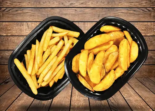 Papas fritas cortadas en gajos con harina, paprika y sal.