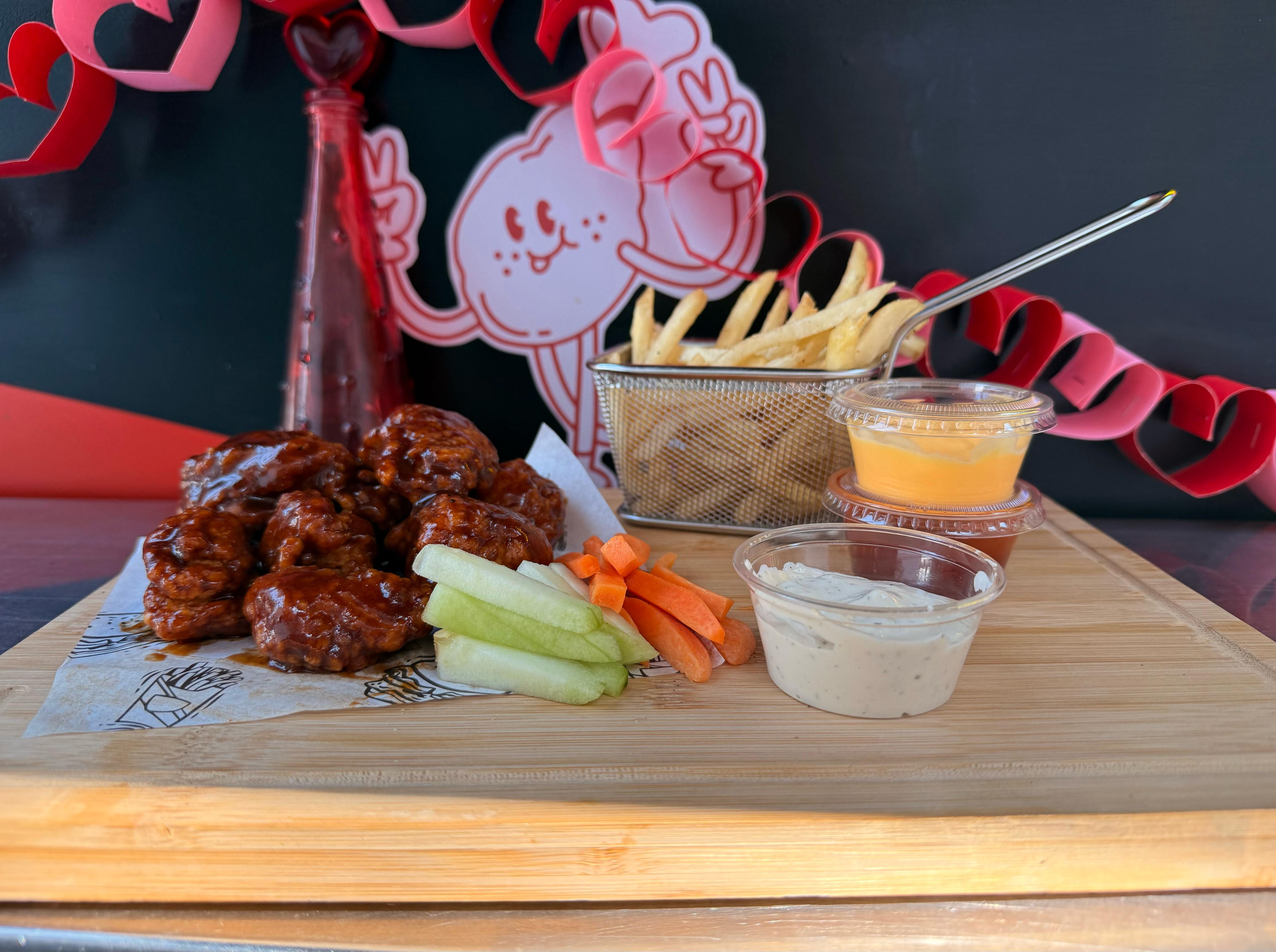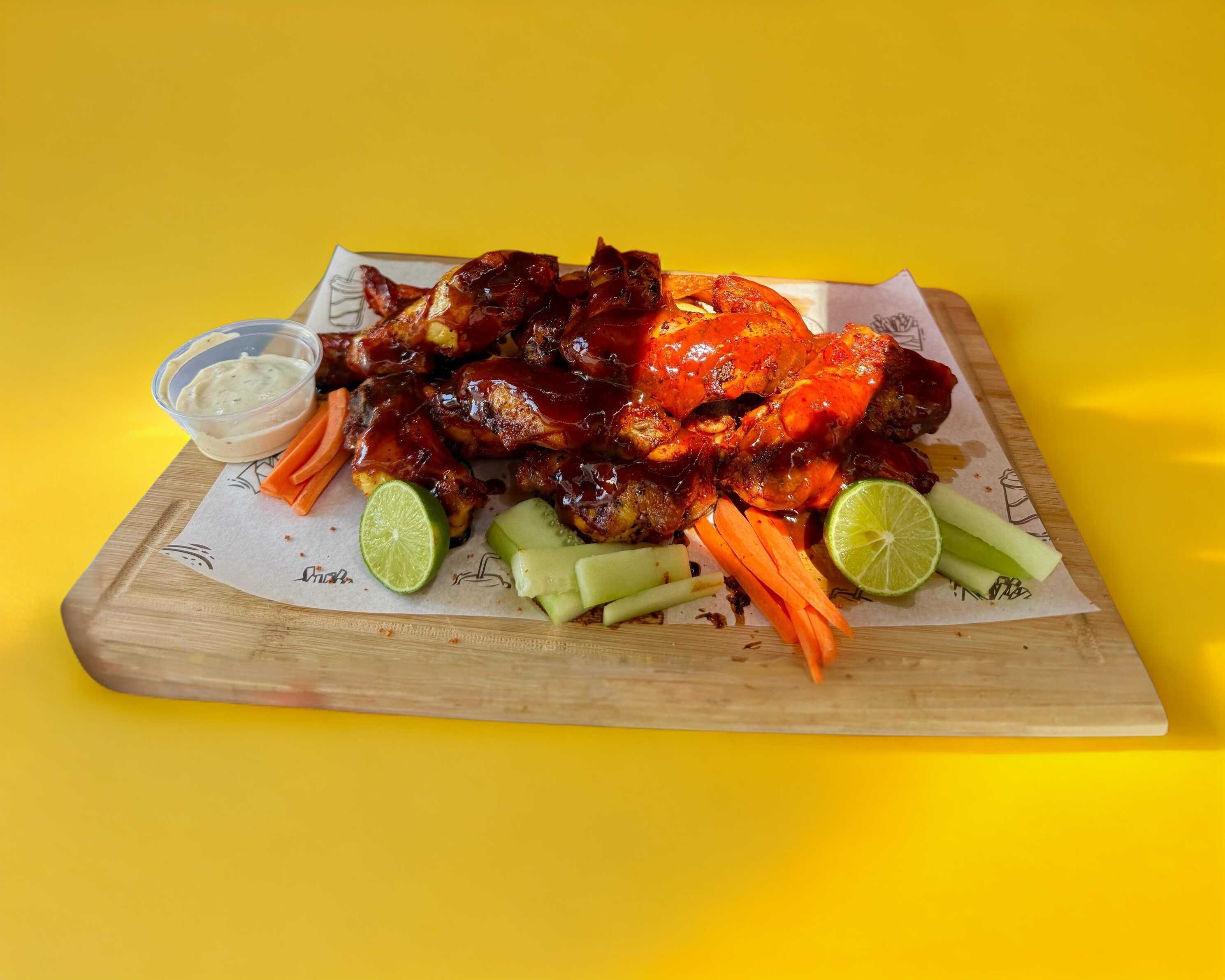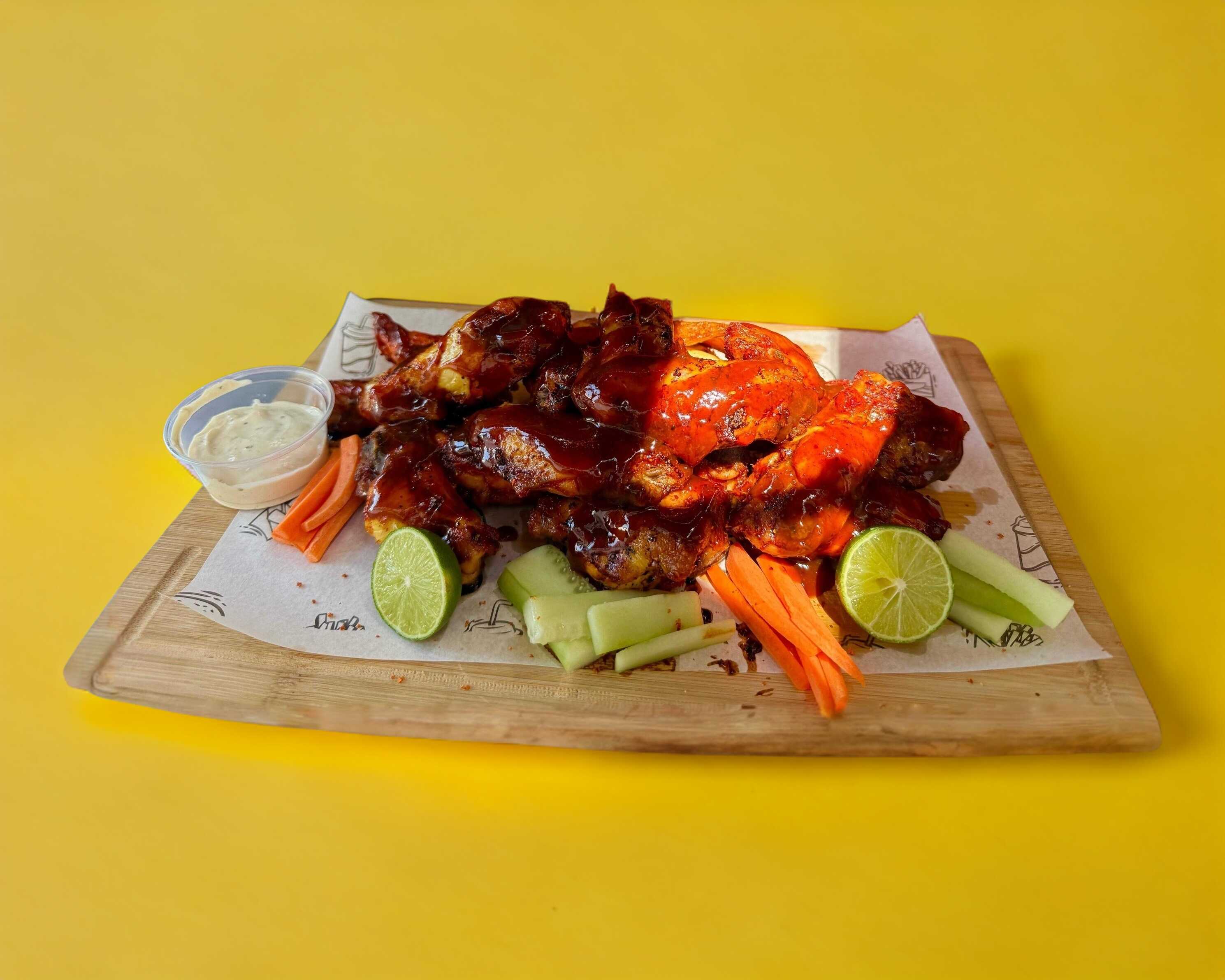 Siete alitas jugosas bañadas en la salsa de tu elección (¡o combinadas!) acompañadas de papas crujientes recién hechas. ¡Perfectas para calmar el antojo y compartir… o no! 😋