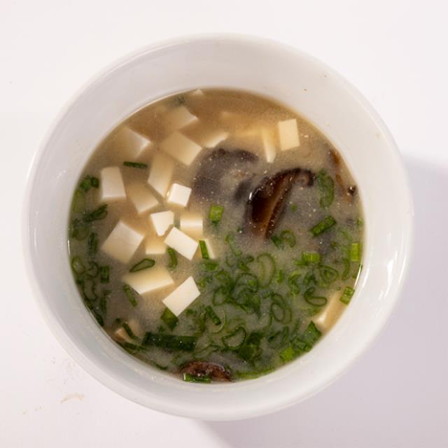 Caldo de miso con shiitake tofu y cebollin