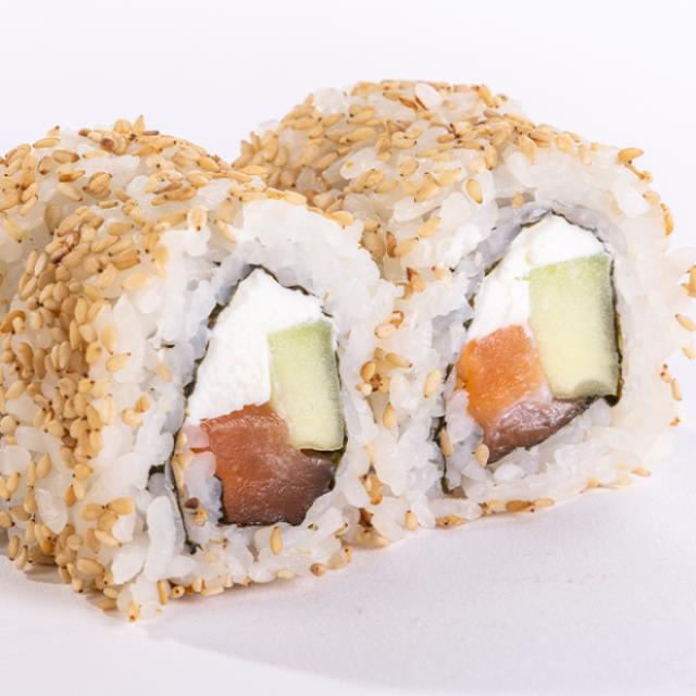 XD: Salmón (25gr), pepino, queso philadelphia. XF: Ajonjolí.