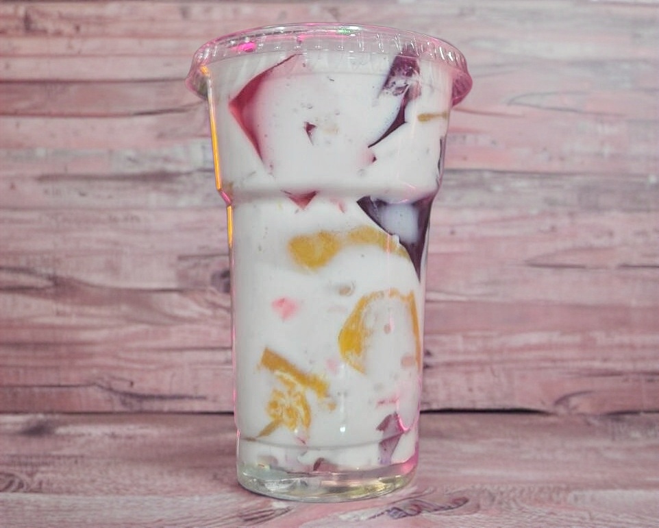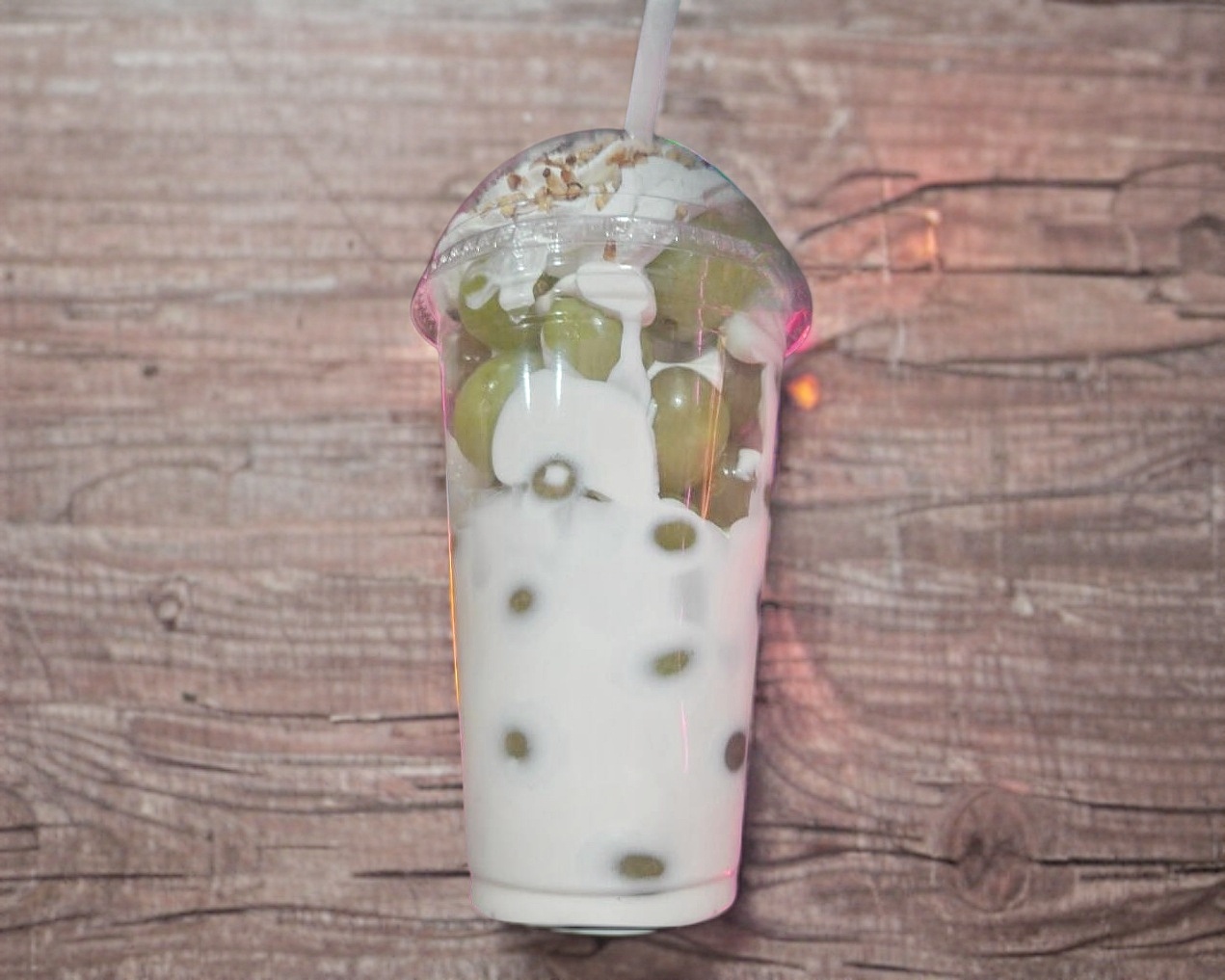 uvas con crema de la casa vaso de 14 onzas con chantilly lechera y dos toppings