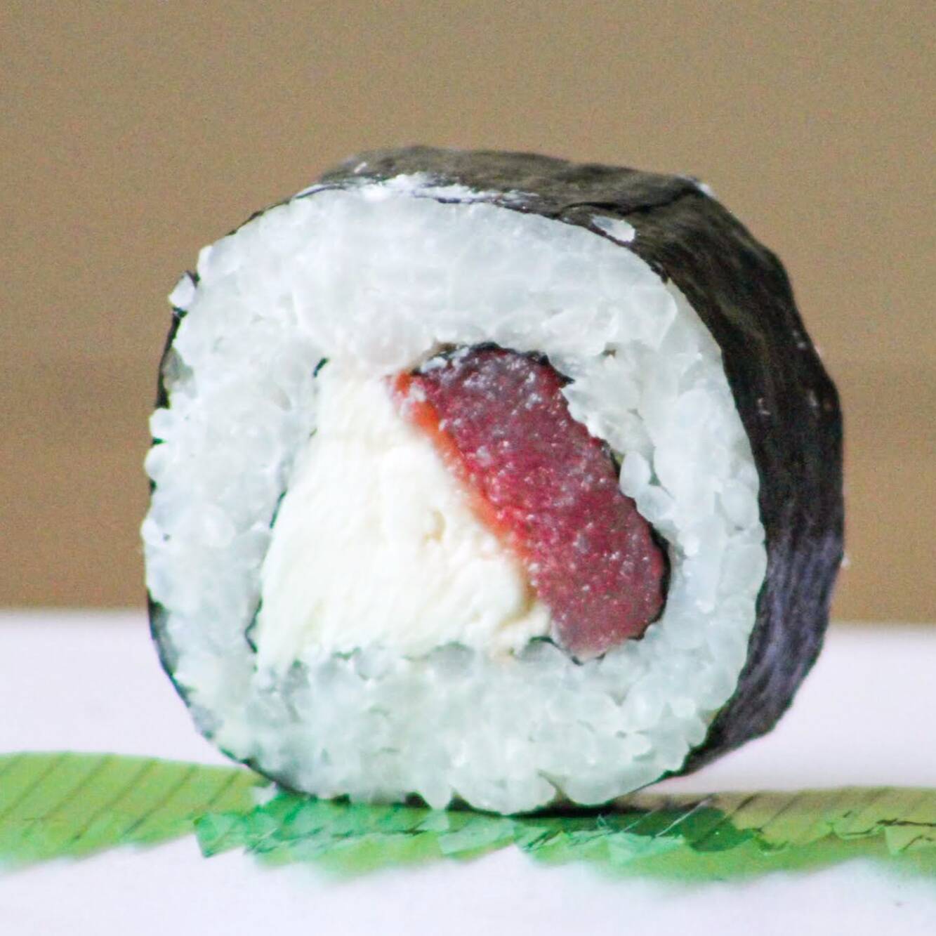 Arroz blanco al vapor, tiras de surimi, queso crema. Acompañado con salsa Tampico y nuestra salsa de soya.