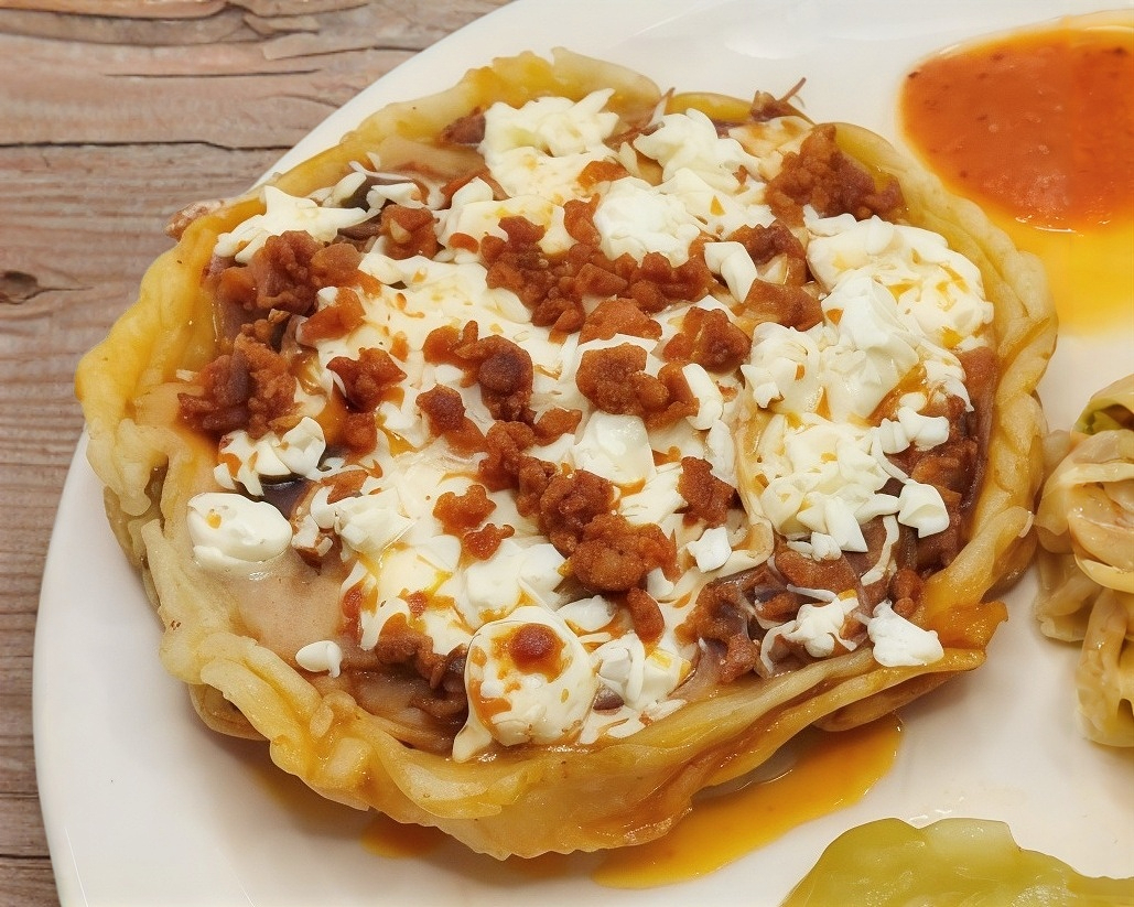 TORTILLA TOSTADA CON CECINA, TOCINO, QUCHILESESO CHEDAR,