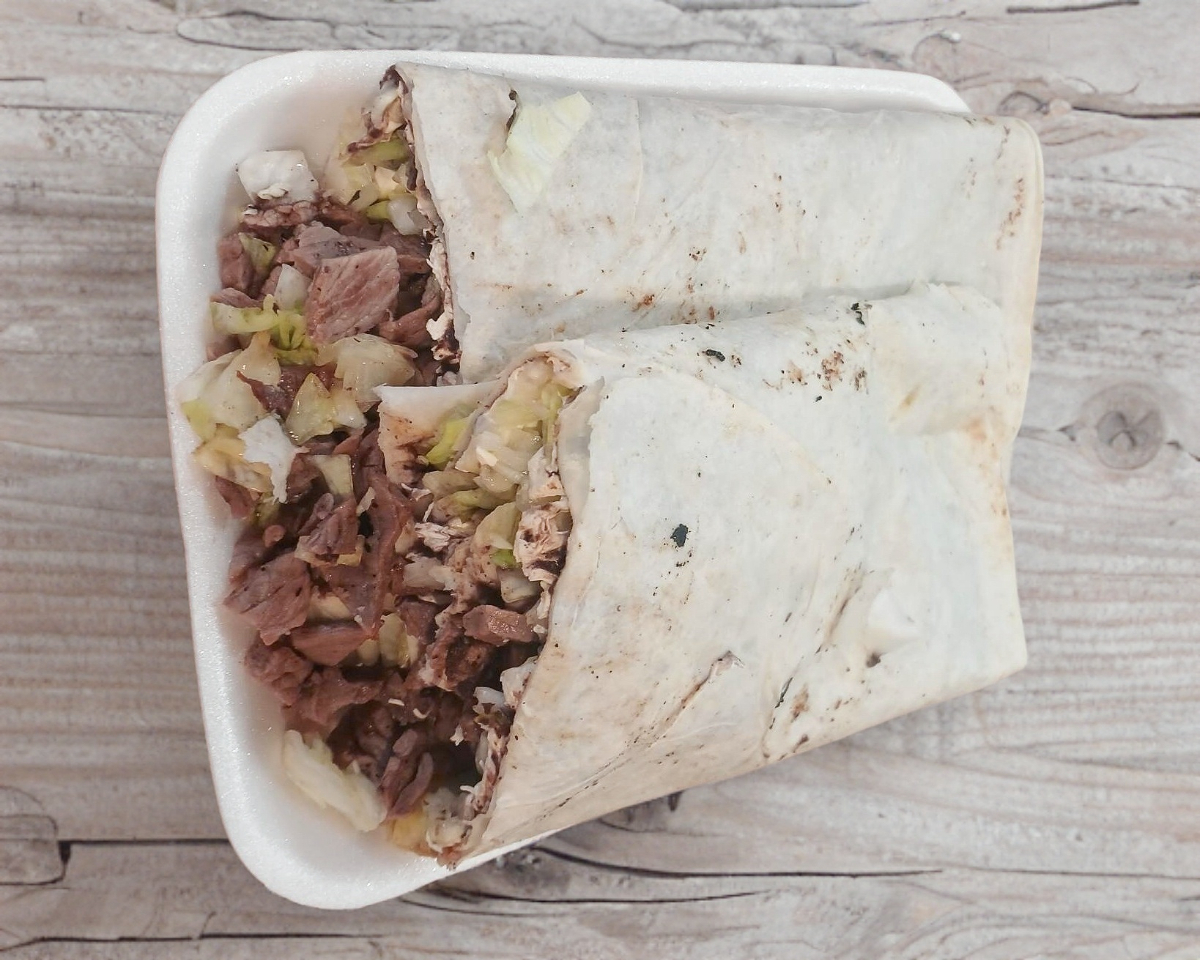 lechuga, cebolla, tomate, mayonesa, queso amarillo, carne 150 gramos de srilon al carbon