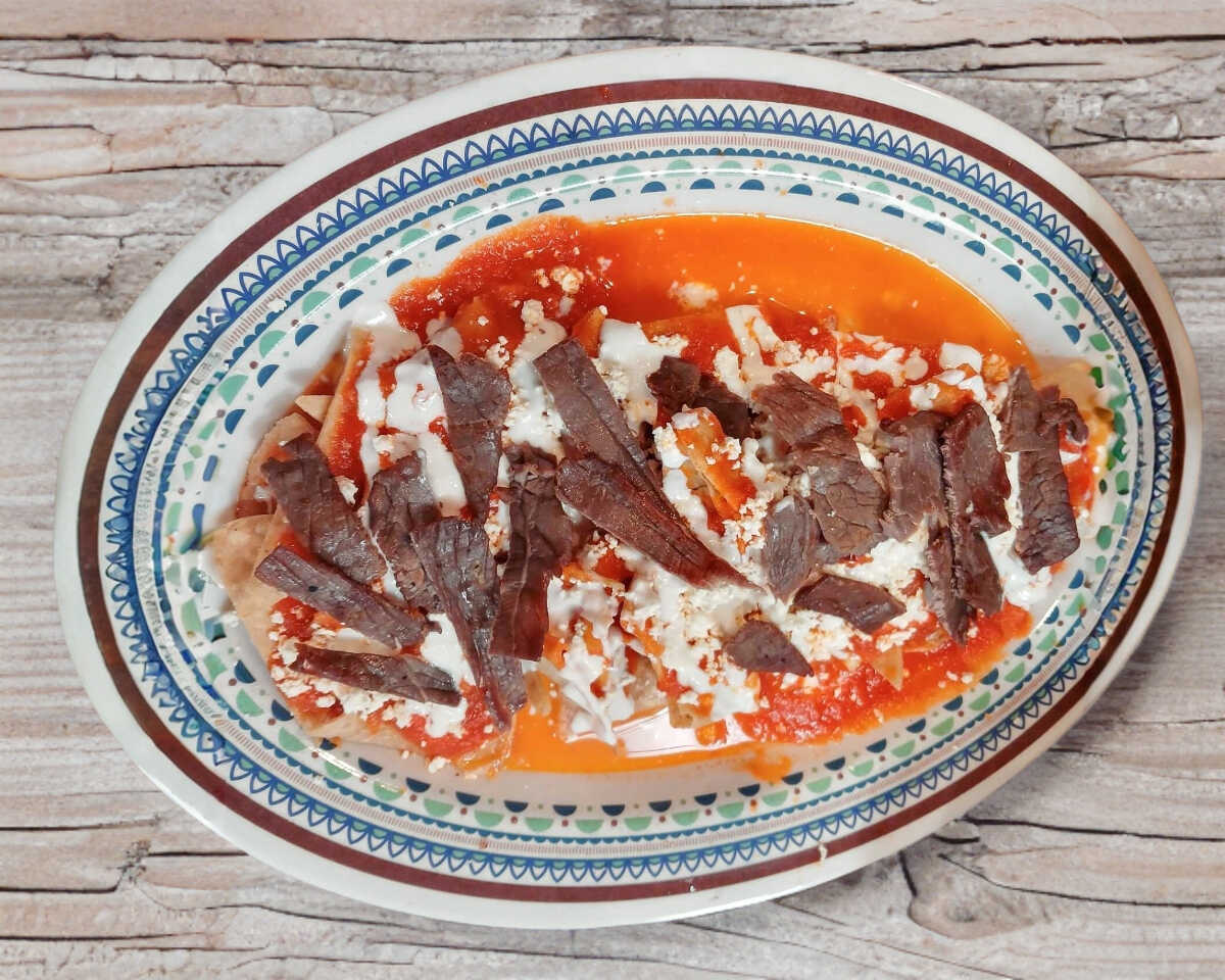CHILAQUILES ROJOS CON CECINA