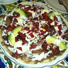 2 TORTILLA DE MASA TAMAÑO MEDIANO, CON FRIJOL REFRITO, SALSA , UN GUISO CON QUESO, CREMA, AGUACATE Y PLATANO FRITO