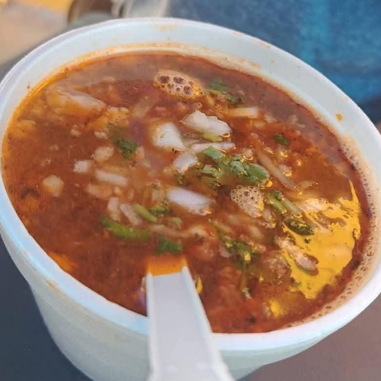 Medio kilo de barbacoa surtida incluye 1 litro de consomé, cebolla con cilantro, salsas, limón y tortilla