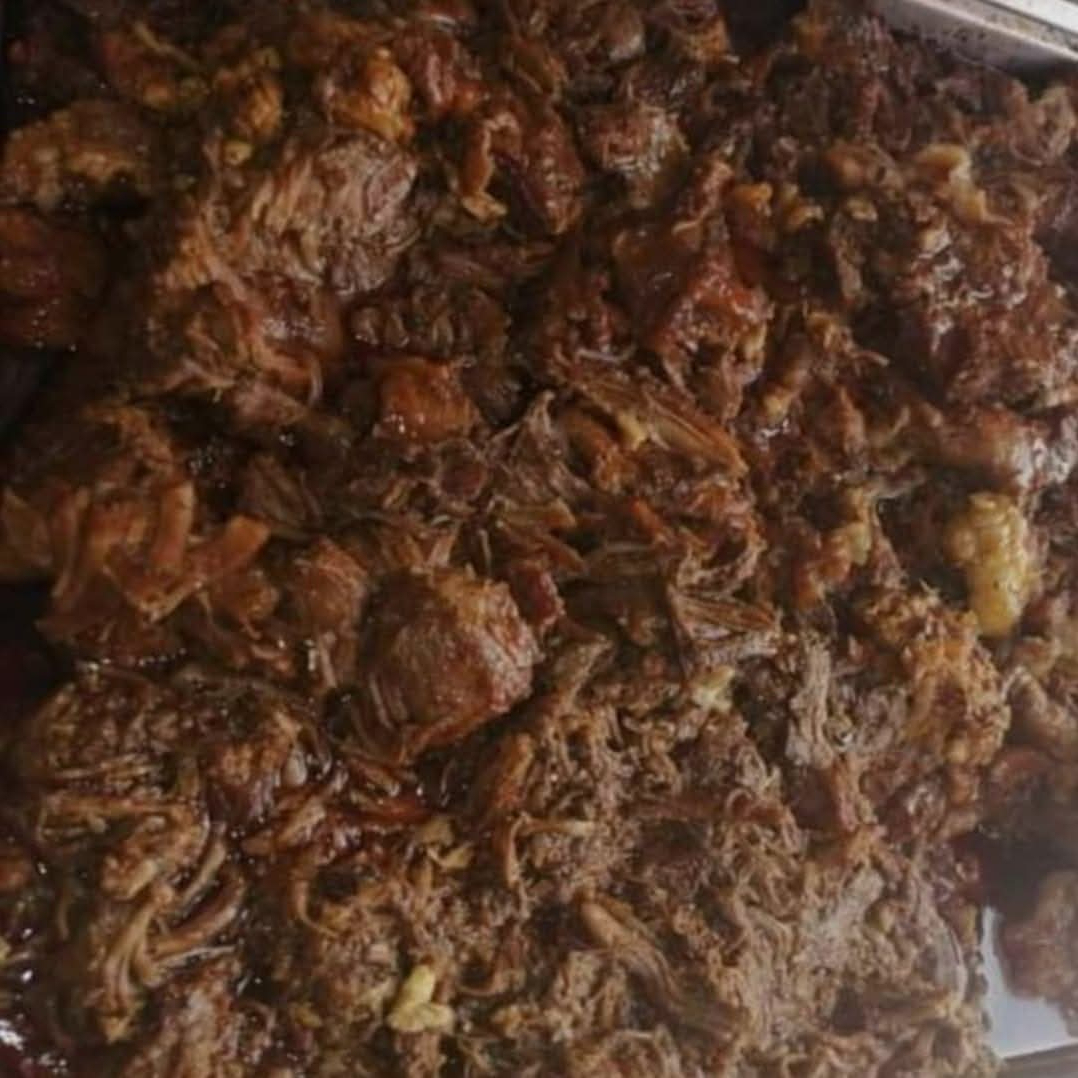 1 Kilo de barbacoa surtida de cabeza de res incluye 2 litros de consomé, cebolla con cilantro, salsas, limón y tortillas