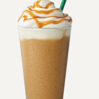 Leche, con caramelo, base para frappé, vainilla y crema batida