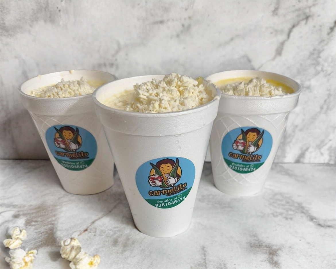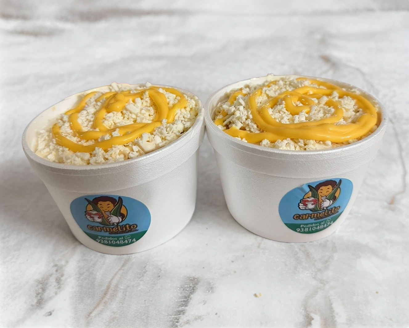 Porción mediana de esquites con maíz, ideal para satisfacer un antojo.