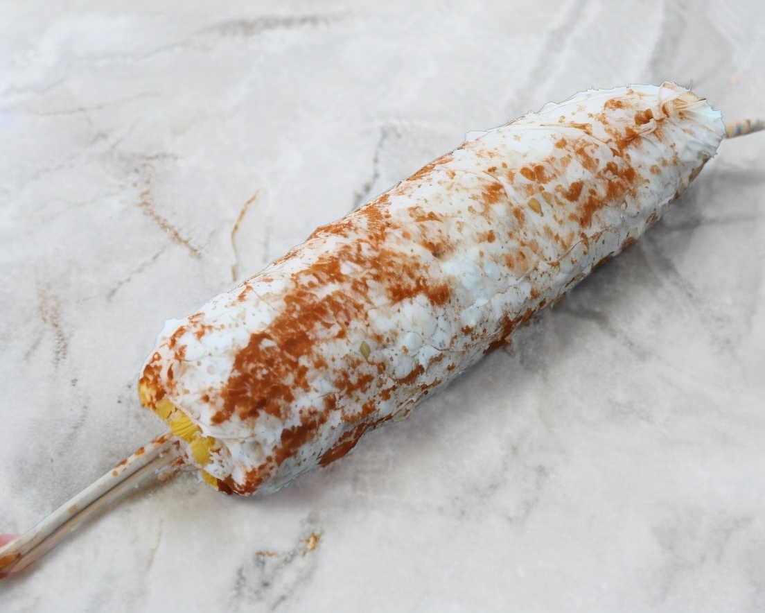 Clásico elote servido con mayonesa, queso y chile al gusto.