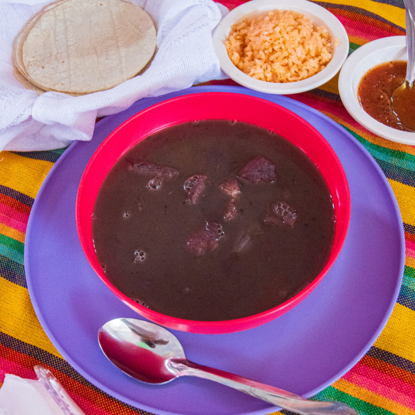 1Lt de caldo de frijol acompañado de arroz, tortillas y salsa tatemada.