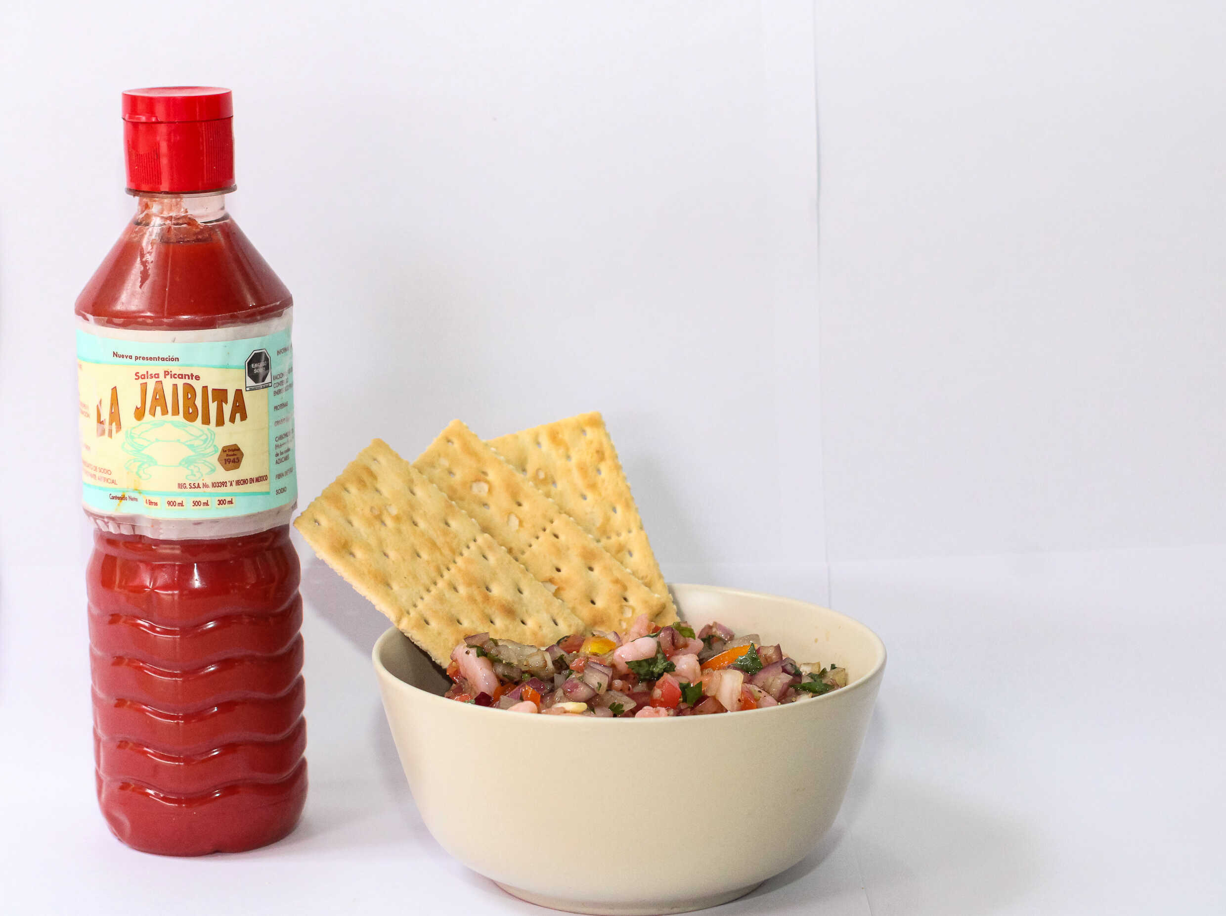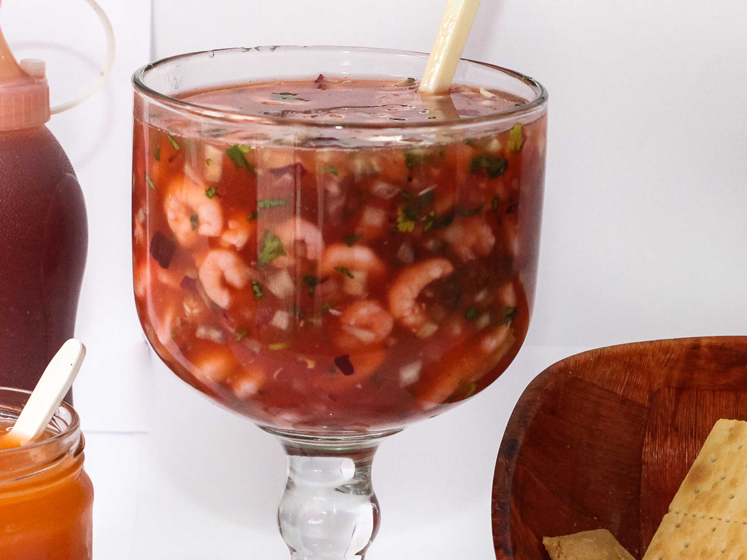 coctel de marisco preparado con cebolla, cilantro, limon, sal, pimienta y catsup