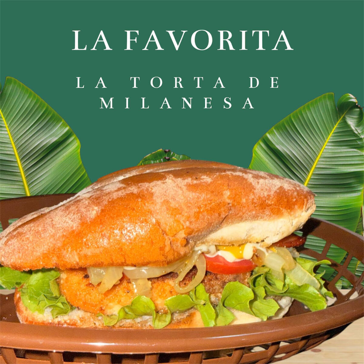 Hamburguesas de milanesa de pollo rellena de jamón y queso, acompañada de lechuga, tomate, cebolla, jamón, queso americano, mayonesa, catsup y mostaza.