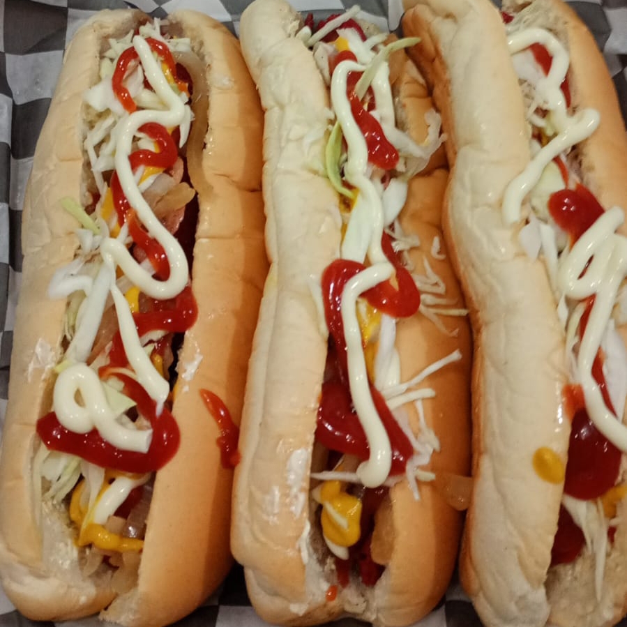 Salchicha asadera, tocino, cebolla frita, repollo, capsu, mayonesa y mostaza