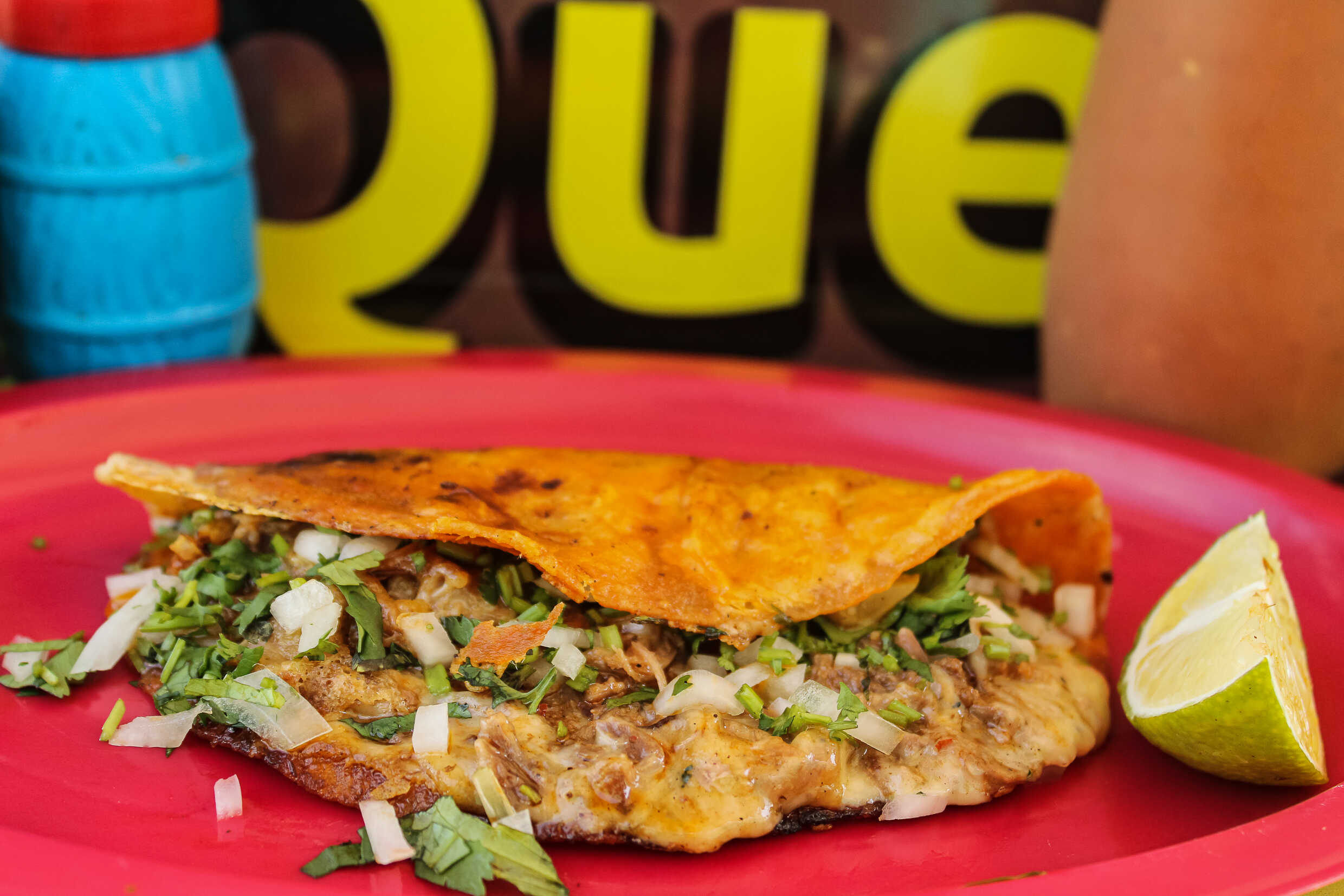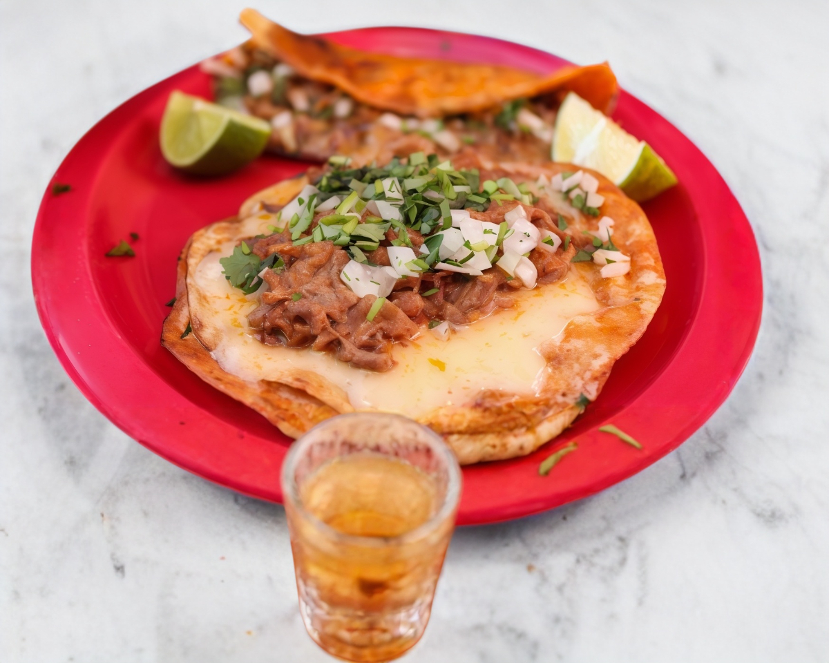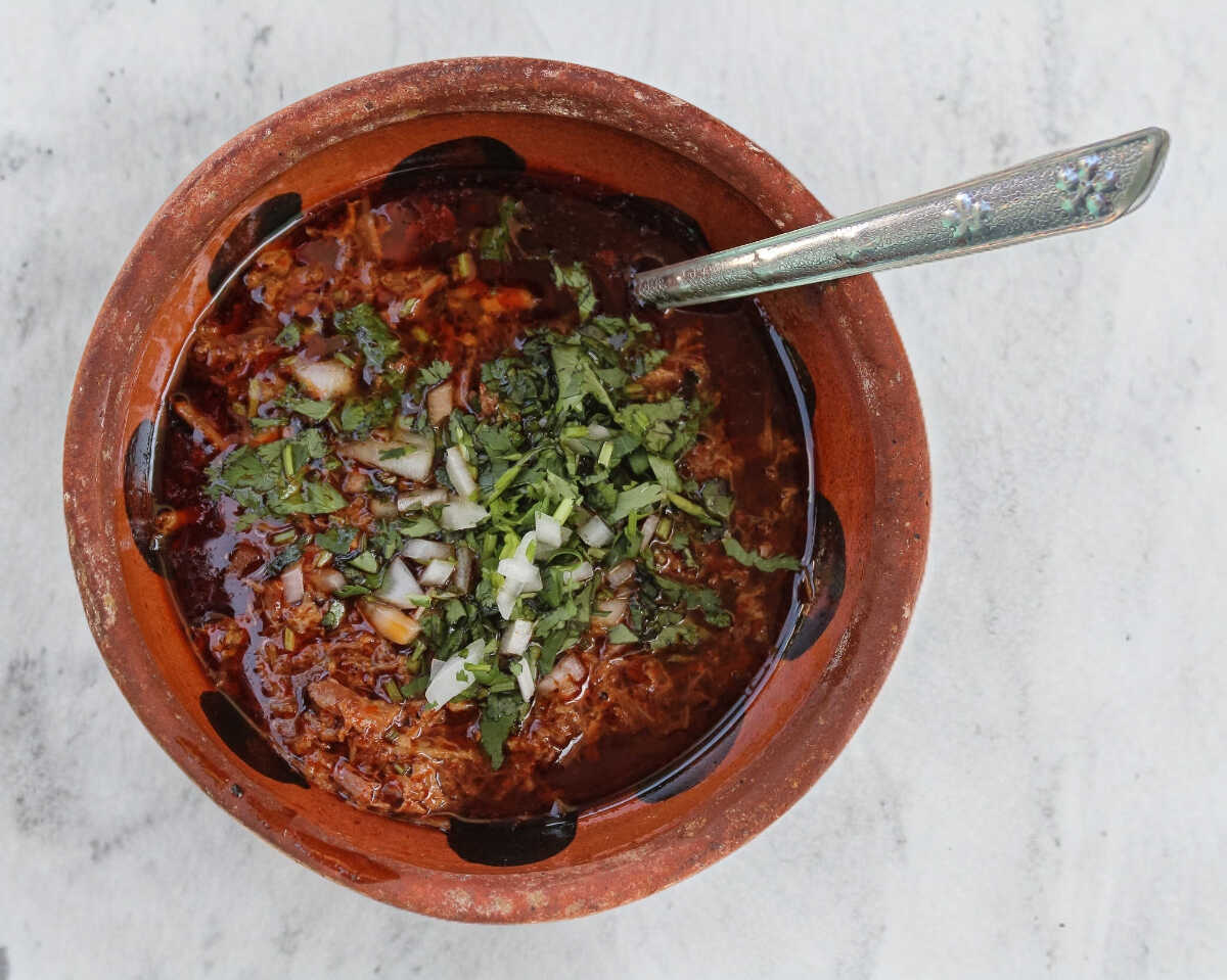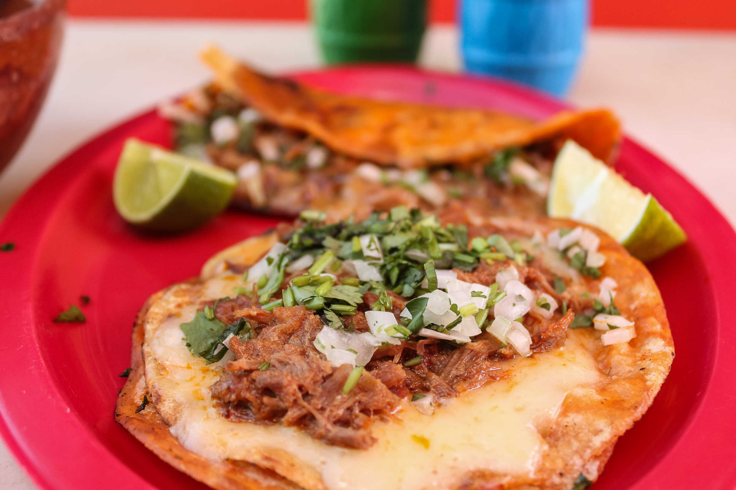 1/2 kilo, 1/2 litro consomé, salsas, tortillas, limones, cebolla y cilantro.