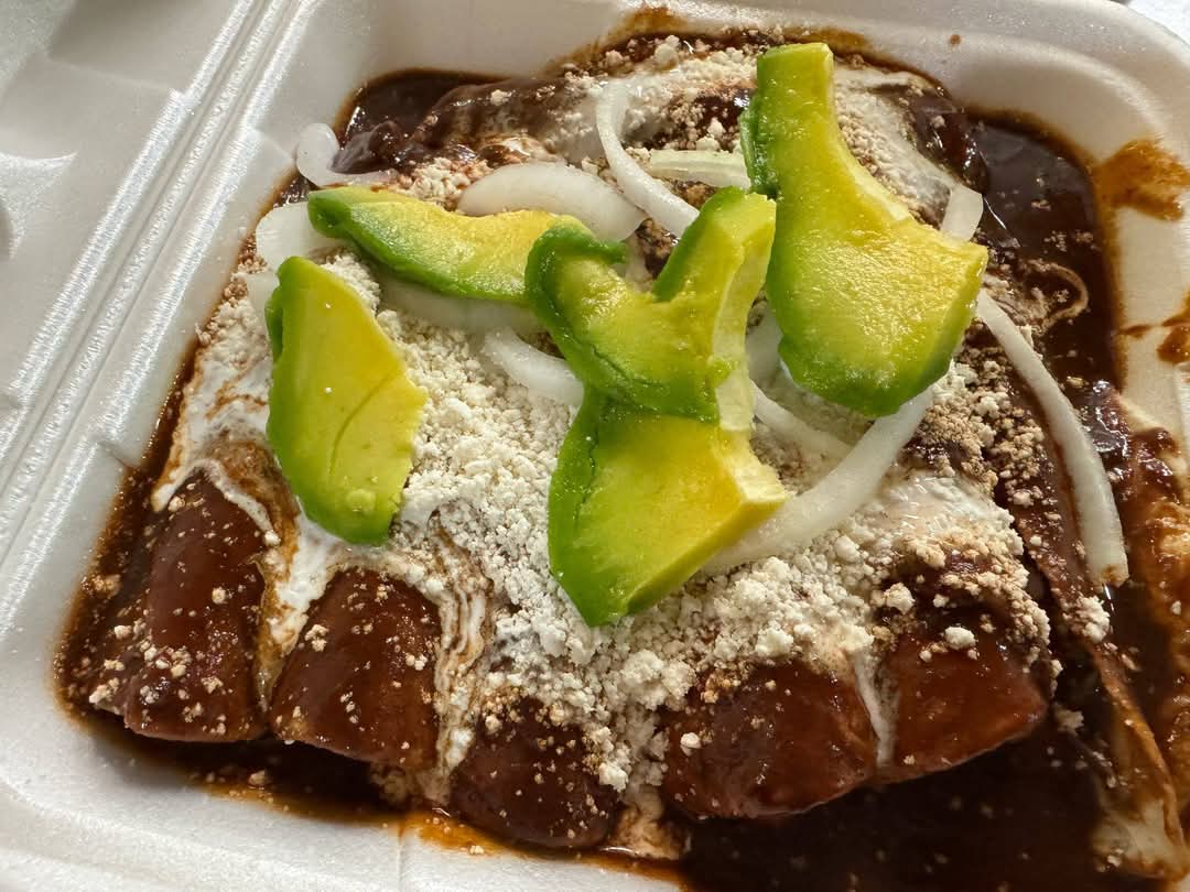Enchiladas de pollo bañadas en mole