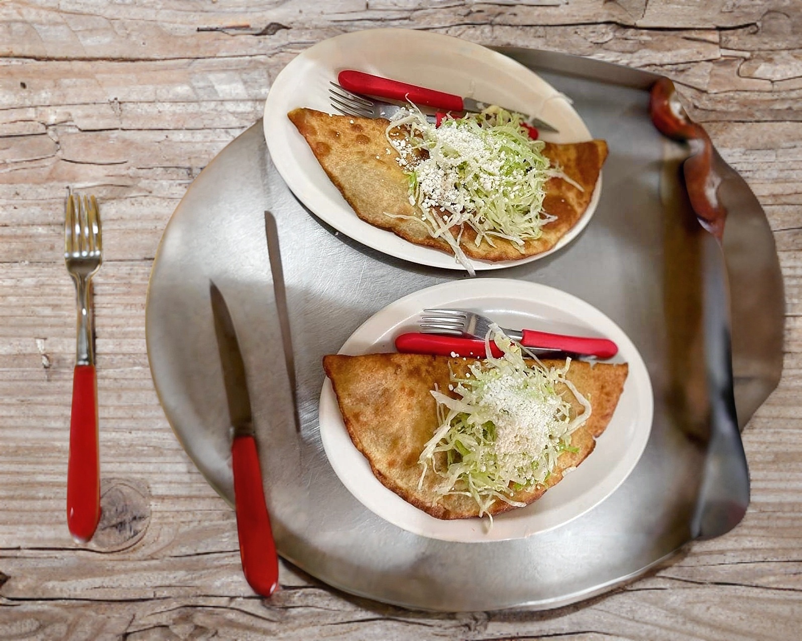 Picadas de asada con frijol, lechuga, crema y queso sopero