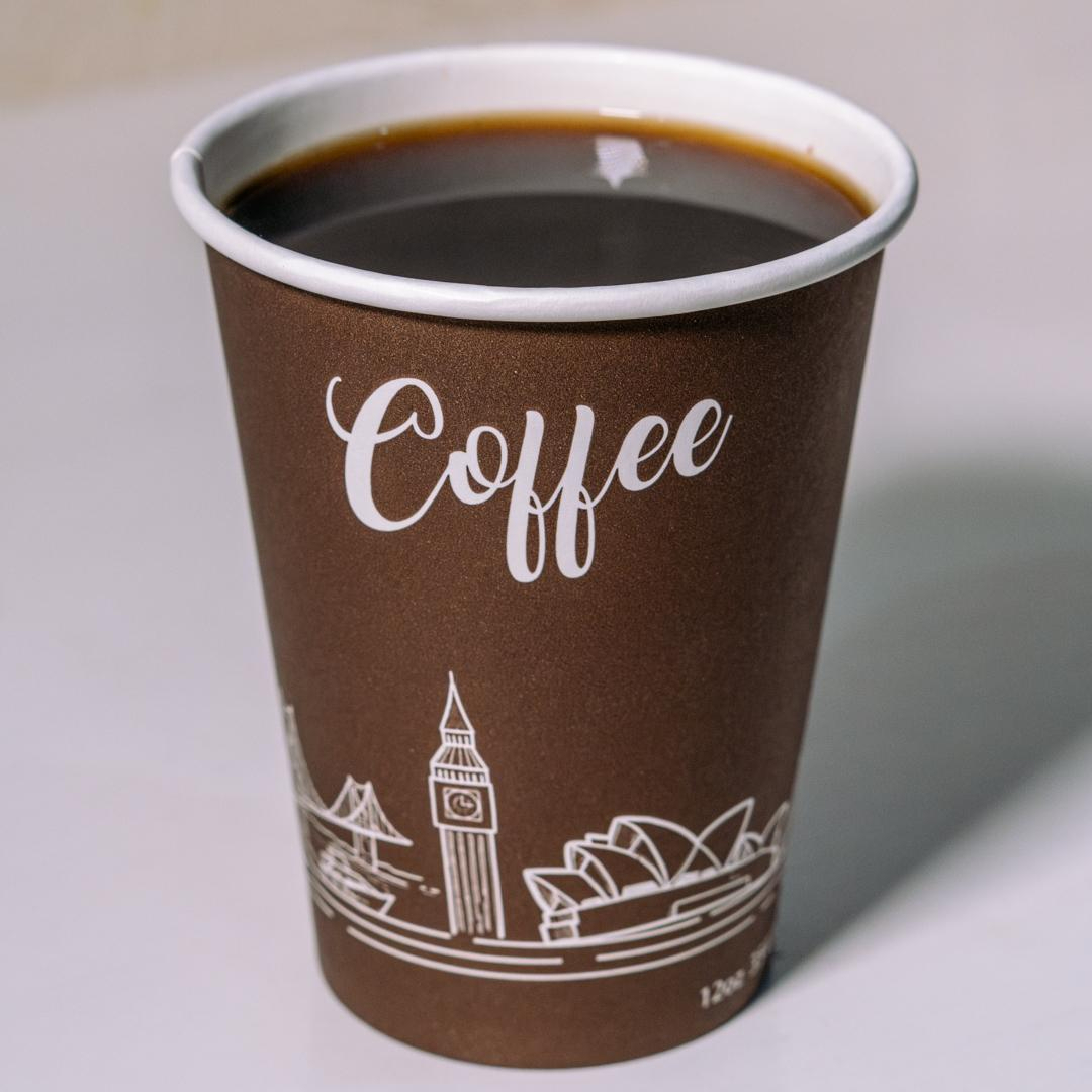 Café caliente preparado al momento, de sabor intenso y balanceado.