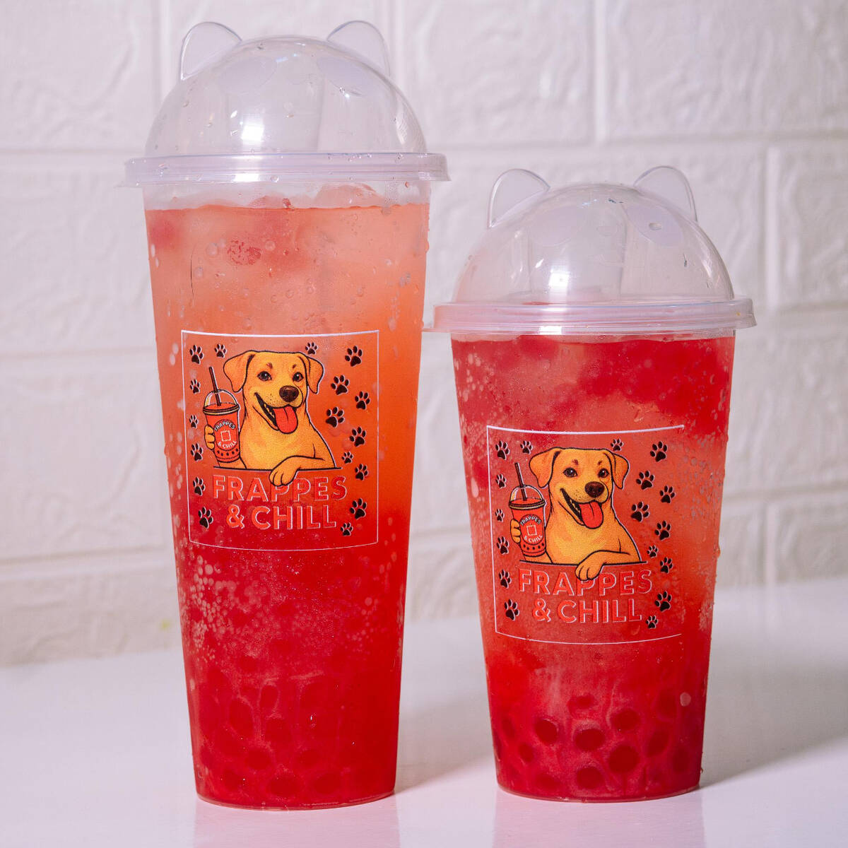 Soda italiana sabor Cereza, preparada al momento con agua gasificada bien fría y popping boba sabor fresa que revientan en la boca y explotan en sabor, con un perfil dulce, vibrante y ultra refrescante. Mediano 500 ml · Grande 700