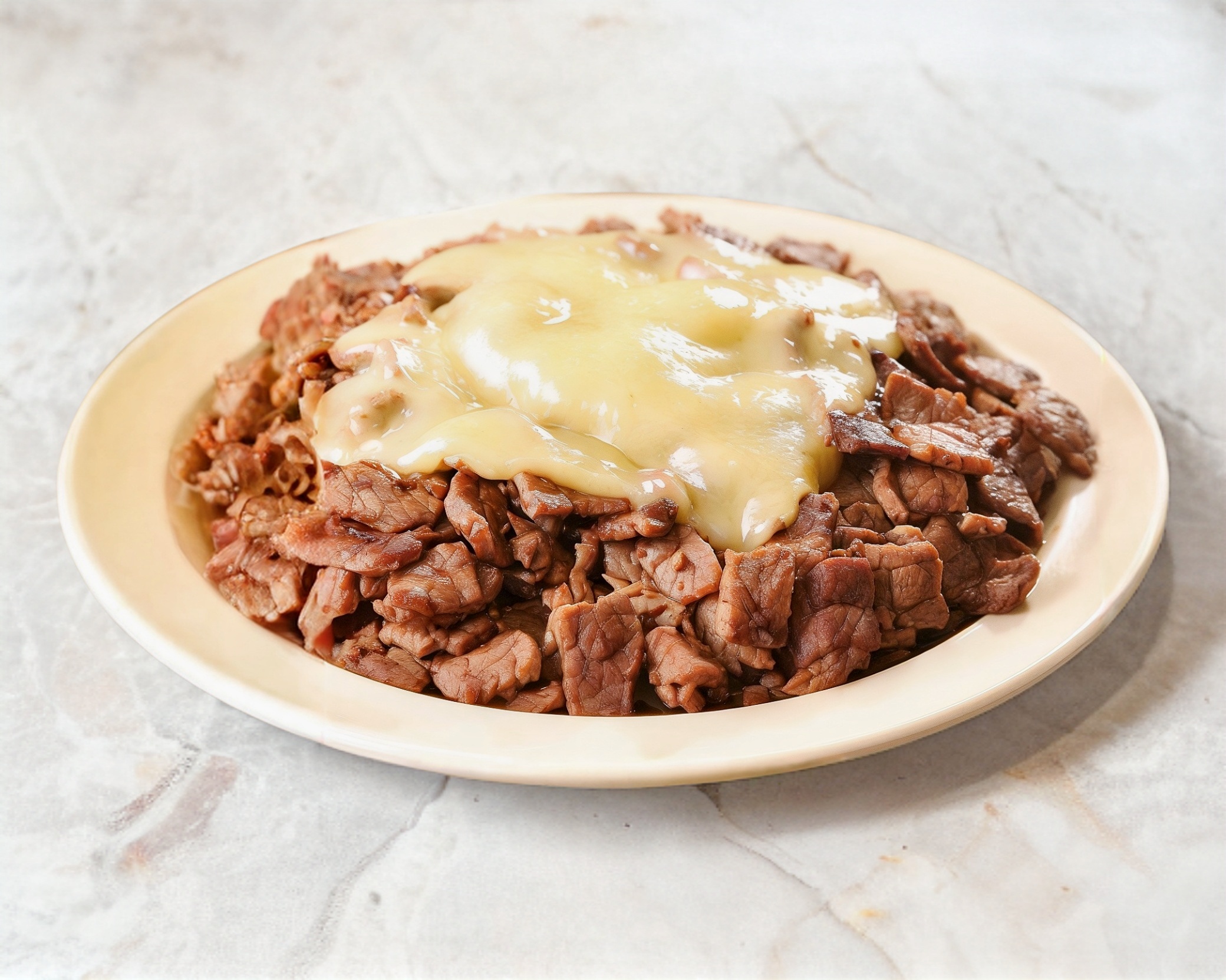 Cama de papas fritas con topping de 200grs de carne de bistec de res y queso