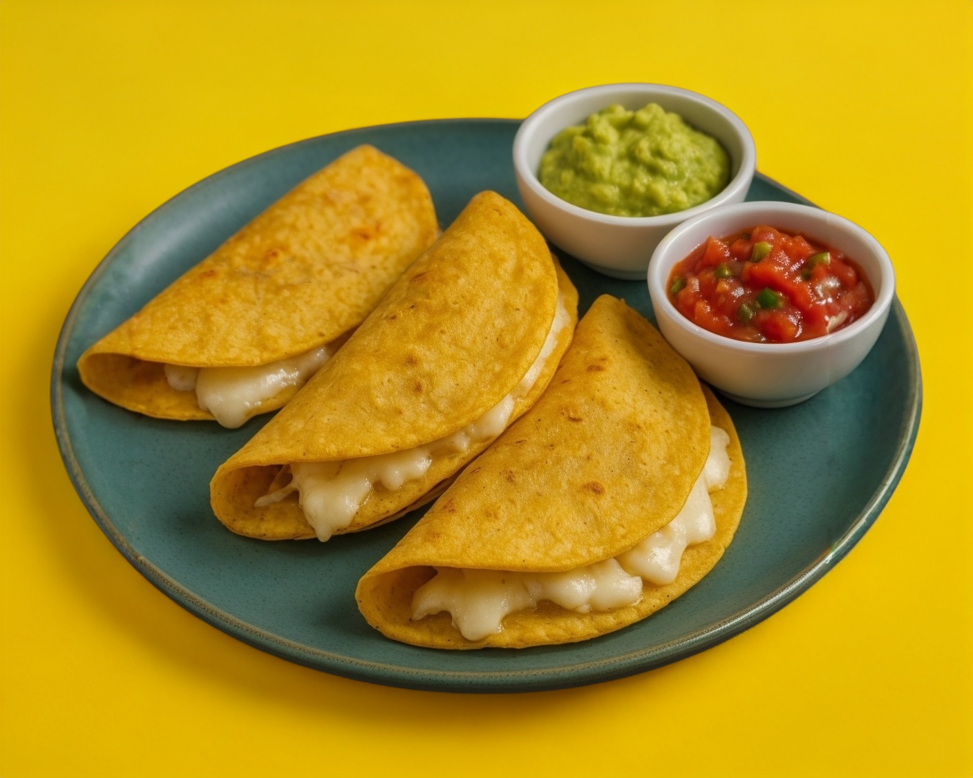 Tortillas de masa de maíz amarillo o maíz negro, sobre comal, sin manteca, con salsa a elegir. Queso fresco y cebolla. Puedes agregar una preparación de tu gusto con costo extra.