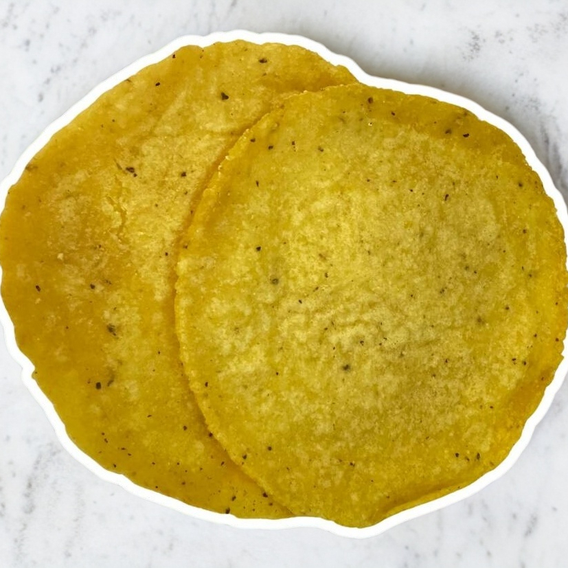 Nuestras tortillas están elaboradas con masa a base de maíz amarillo o maíz negro, traída del estado de Chiapas, masa elaborada de forma tradicionalmente artesanal. Porción de 50 g de masa de maíz.