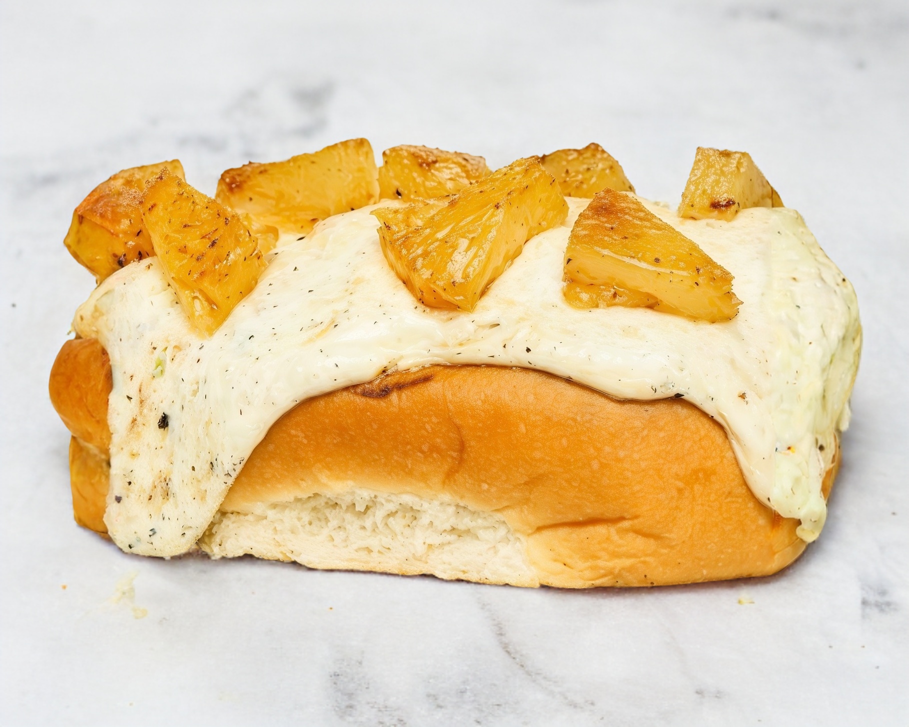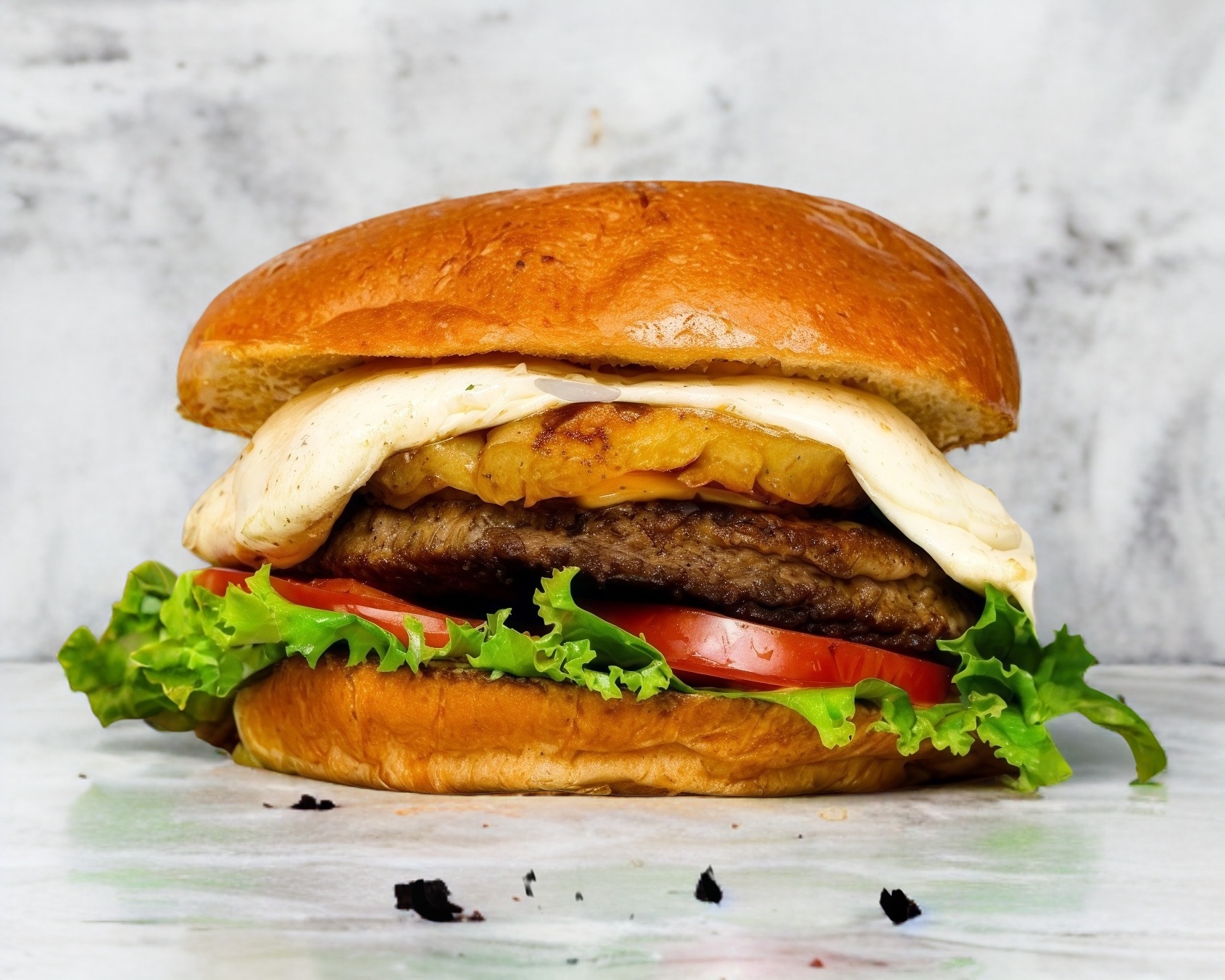 Hamburguesa pa-clásica + delicioso queso de hebra y piña.