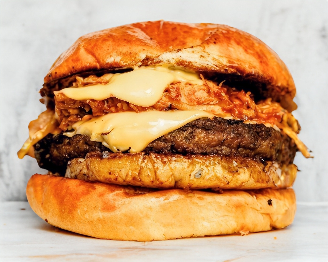 La hamburguesa paclásica + costra de 4 quesos con cheddar líquido.