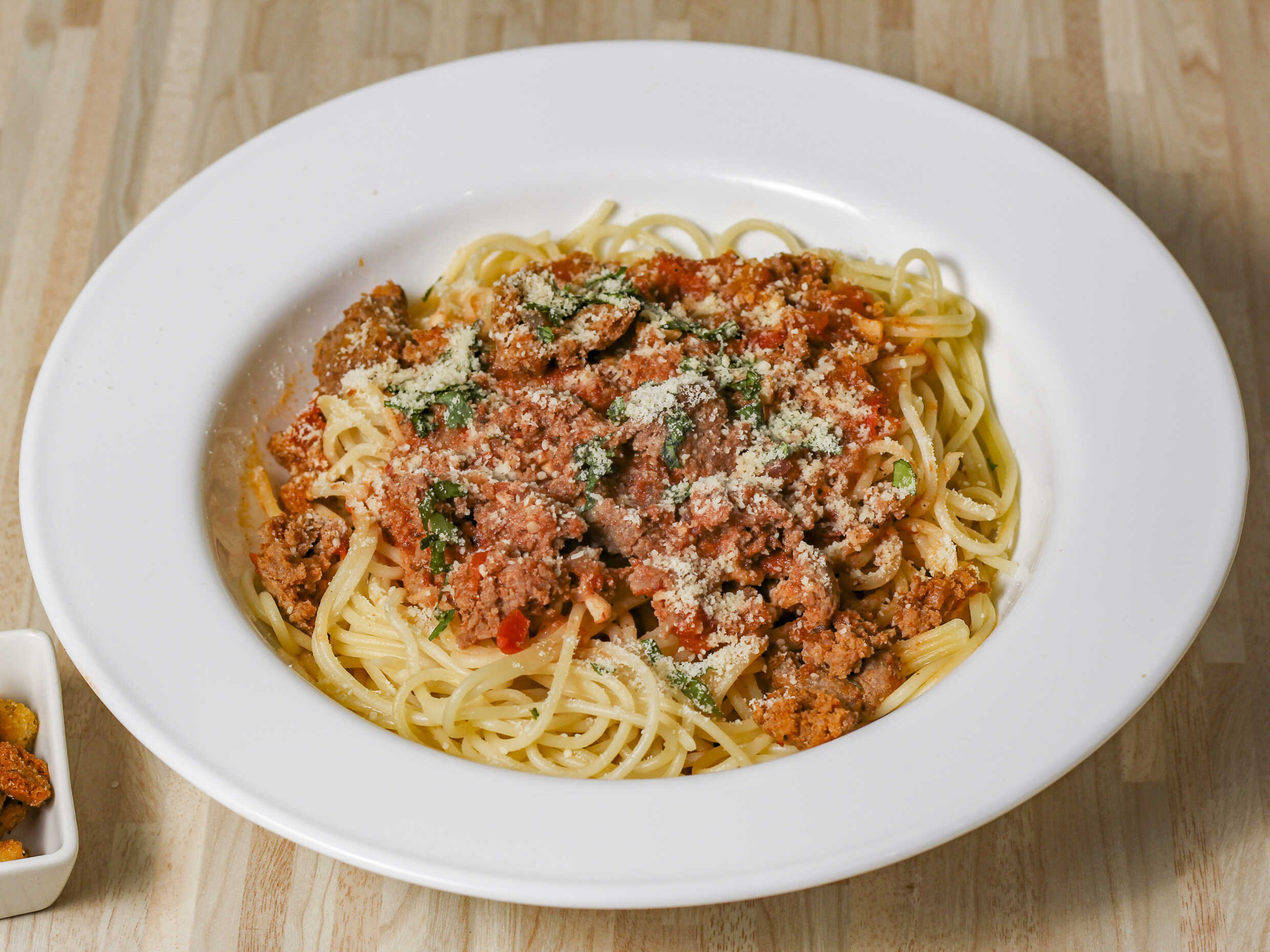 *Personal* Carne molida, con salsa de tomate condimentada bañada en queso mozzarella. + cilantro opcional