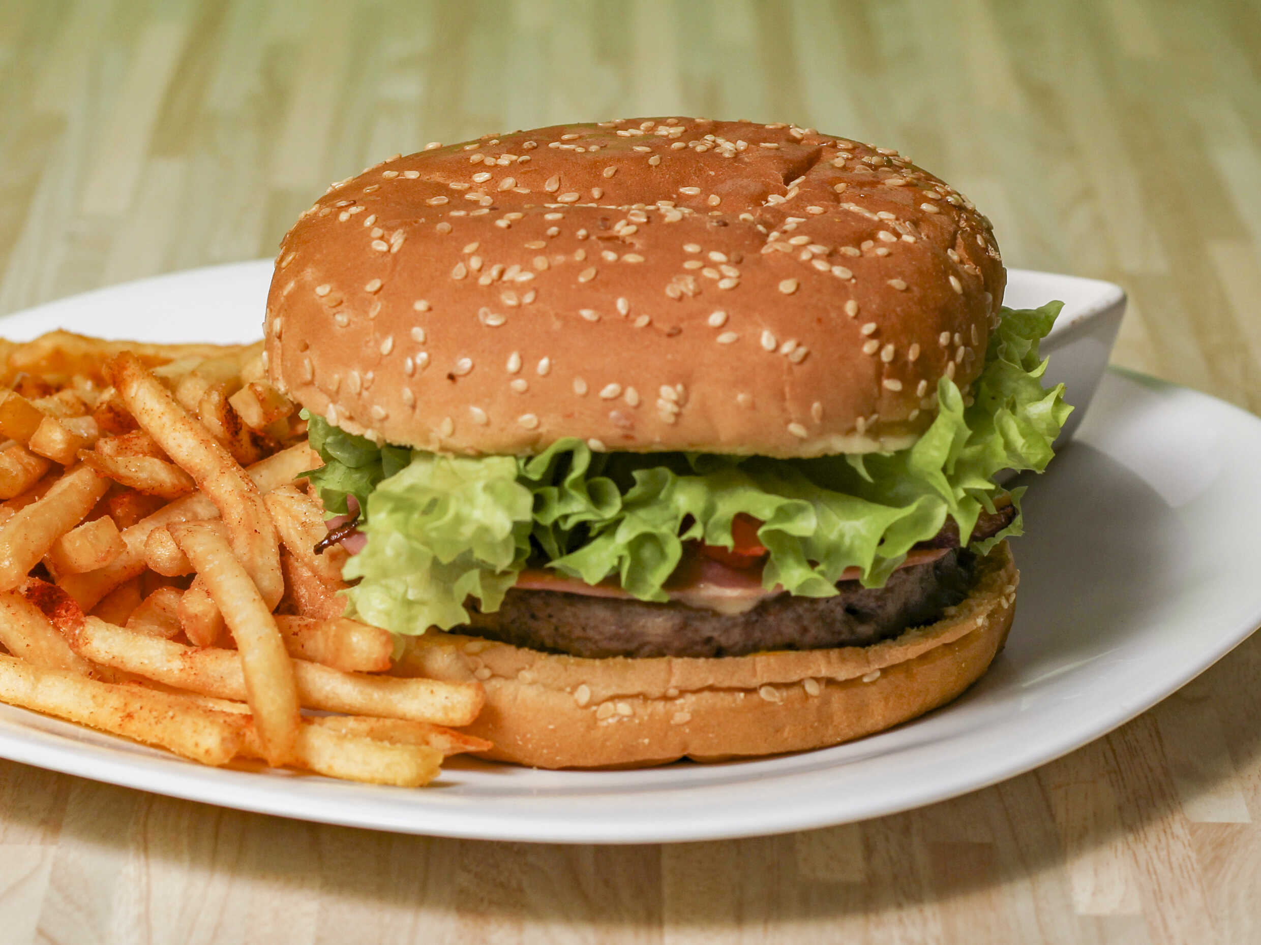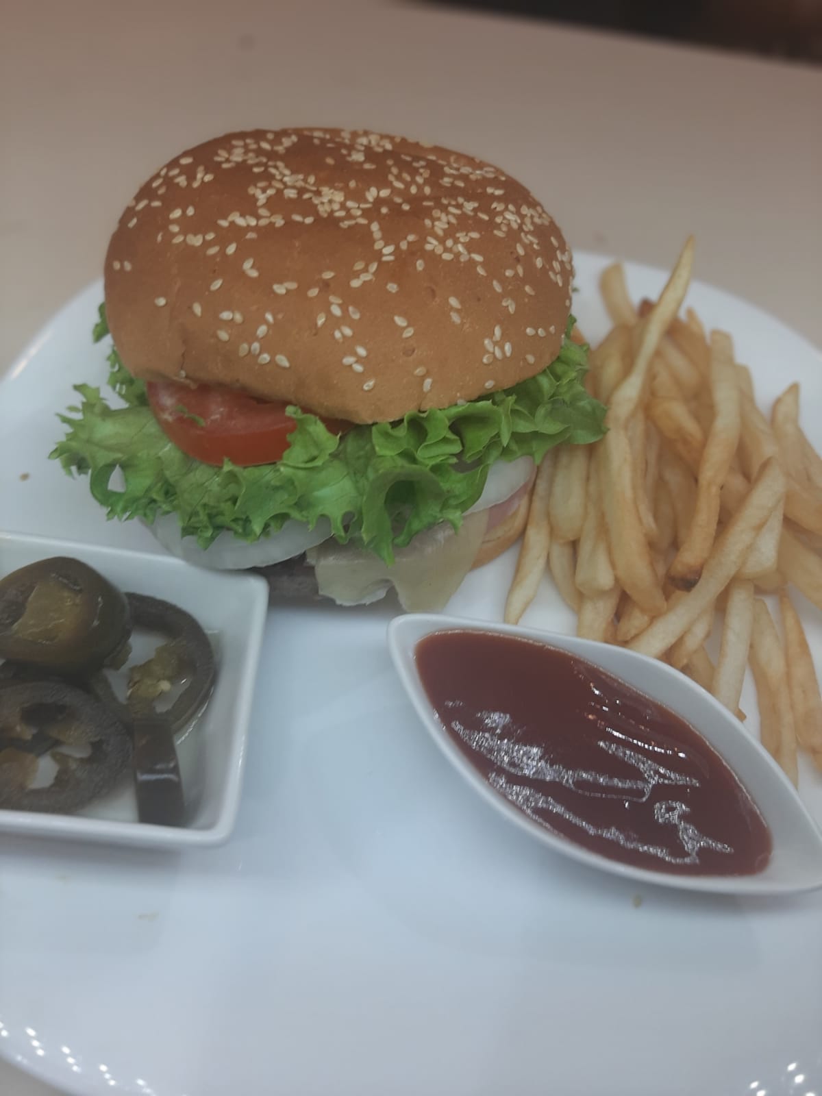 Suave y exquisita carne de sirloin, acompañada con jamón, tocino, queso manchego, lechuga, tomate, cebolla y toque de chile jalapeño Se sirve con papas a la francesa.