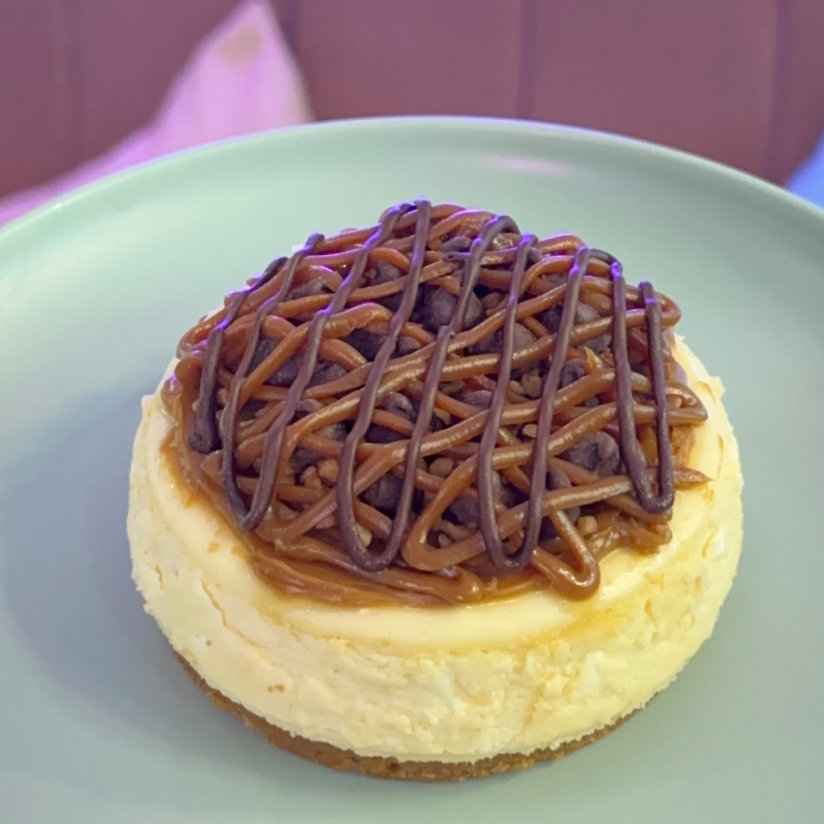Cheesecake artesanal súper cremoso, preparado con queso crema premium y una base suave. Cubierto con un delicioso dulce de leche, nuez y chocolate. Perfecto para un antojo de tarde, para compartir o para consentirte.